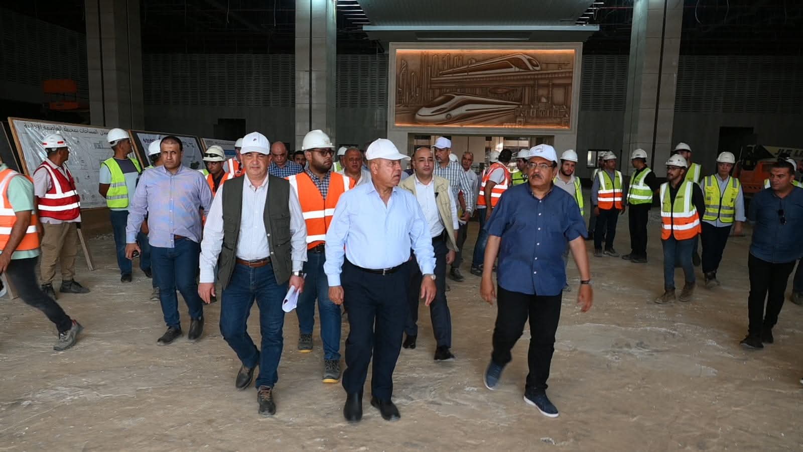 تفقد الوزير يرافقه نواب الوزارة ورؤساء الهيئات مواقع العمل بالخط الأول لشبكة القطار الكهربائي السريع (السخنة – العلمين – مطروح)، من جنوب حلوان عند كوبري المسار لعبور النيل وحتى محطة العاصمة.