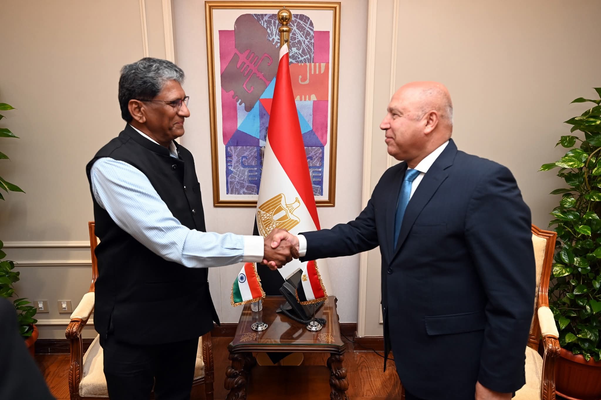 وأكد الوزير عمق العلاقات بين مصر والهند، مشددًا على أهمية تعزيز الشراكات الصناعية ودعم التكامل الاقتصادي، مع الترحيب بالشركات الأجنبية ومنها الهندية للاستثمار في قطاعات الطاقة المتجددة والبنية التحتية والصناعات التحويلية.