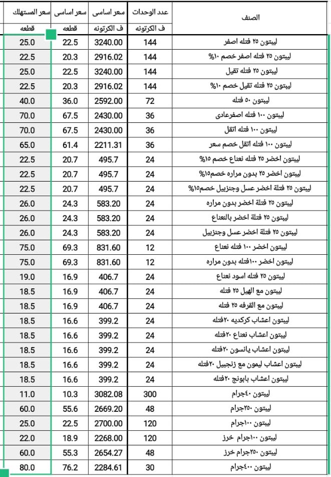 وارتفع سعر ليبتون 25 فتلة أخضر من 20 إلى 24.3 جنيه، كما ارتفع سعر ليبتون 400 جرام من 68 إلى 76.2 جنيه.