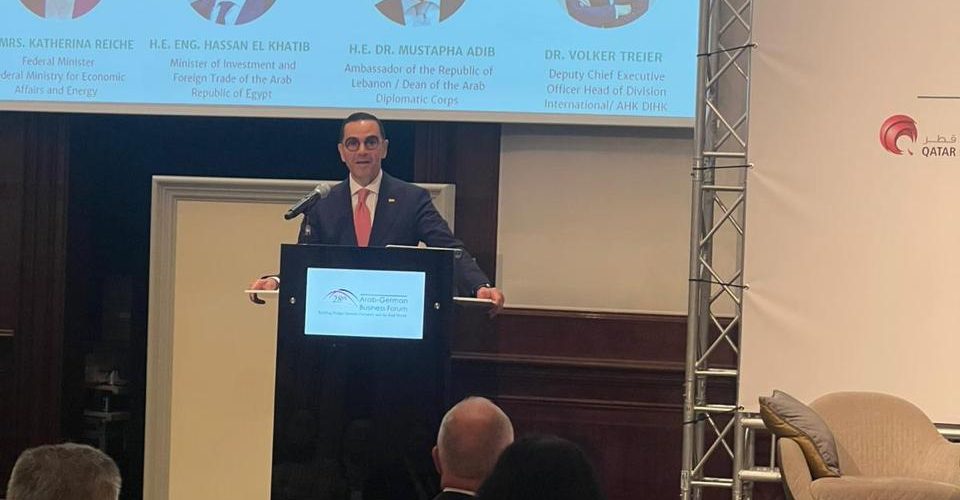 جاء ذلك على هامش الافتتاح الرسمي للملتقى الاقتصادي العربي الألماني بحضور كاثرينا ريشا وزيرة الاقتصاد والطاقة الألمانية الجديدة ونحو ٢٥٠ شركة ألمانية وعربية.
