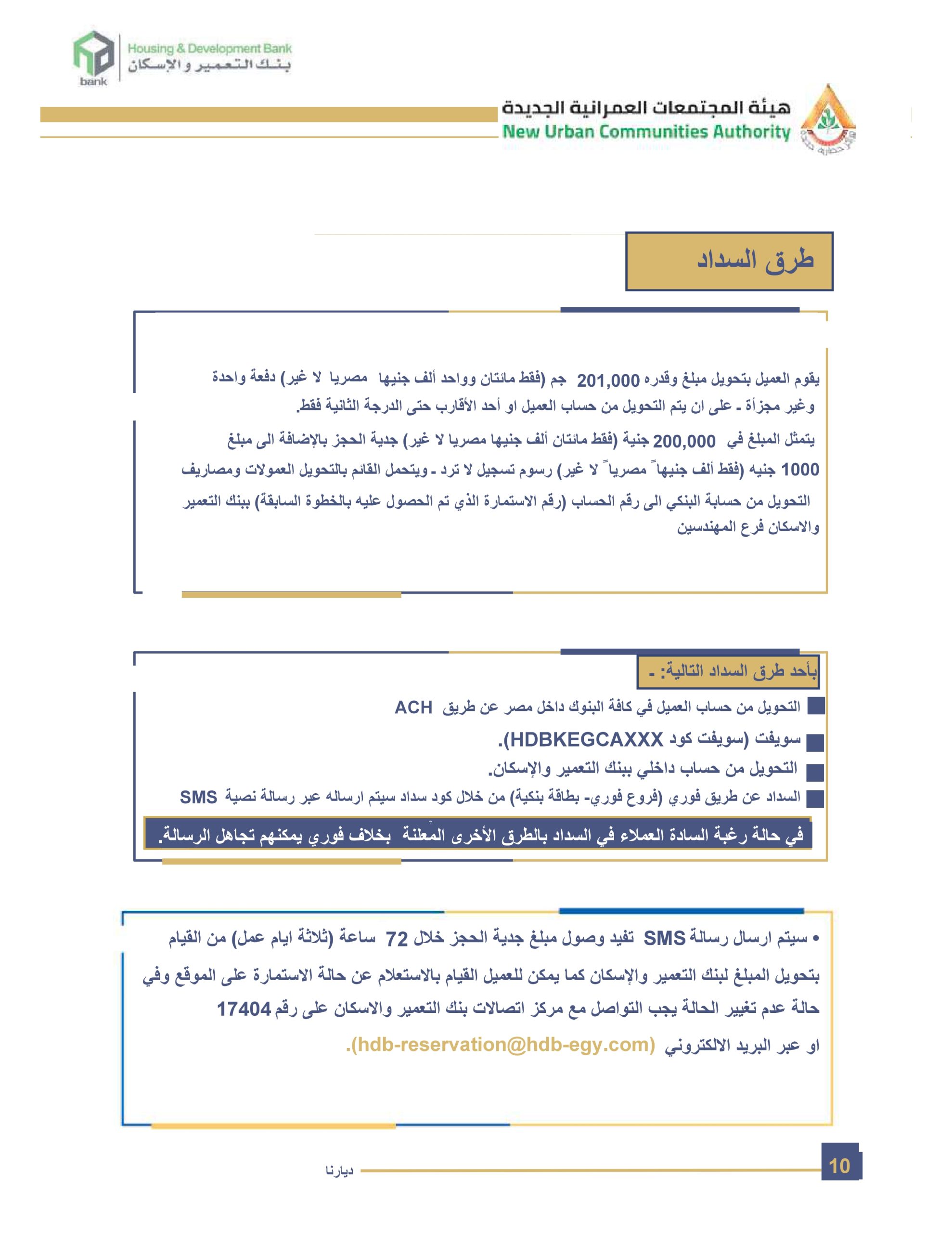 يمكن للمتقدمين السداد عبر التحويل البنكي (ACH) من أي بنك مصري باستخدام كود HDBKEGCAXXX، أو الدفع عبر خدمة “فوري” باستخدام البطاقات البنكية أو من خلال فروع فوري، كما يتاح التحويل المباشر من حسابات بنك التعمير والإسكان.