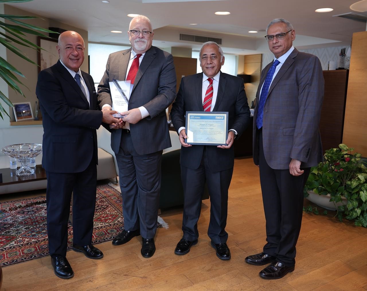 حضر التكريم يحيى أبوالفتوح نائب الرئيس التنفيذي للبنك الأهلي المصري وحسام الحجار رئيس مجموعة الدعم الإداري للبنك الأهلي المصري وجيم فورد مدير المبيعات الدولية شركة Madico الأمريكية المتخصصة في الحلول الأمنية ومنتجات الحماية ونادر وهيب وكيل شركة Madico الأمريكية في مصر.