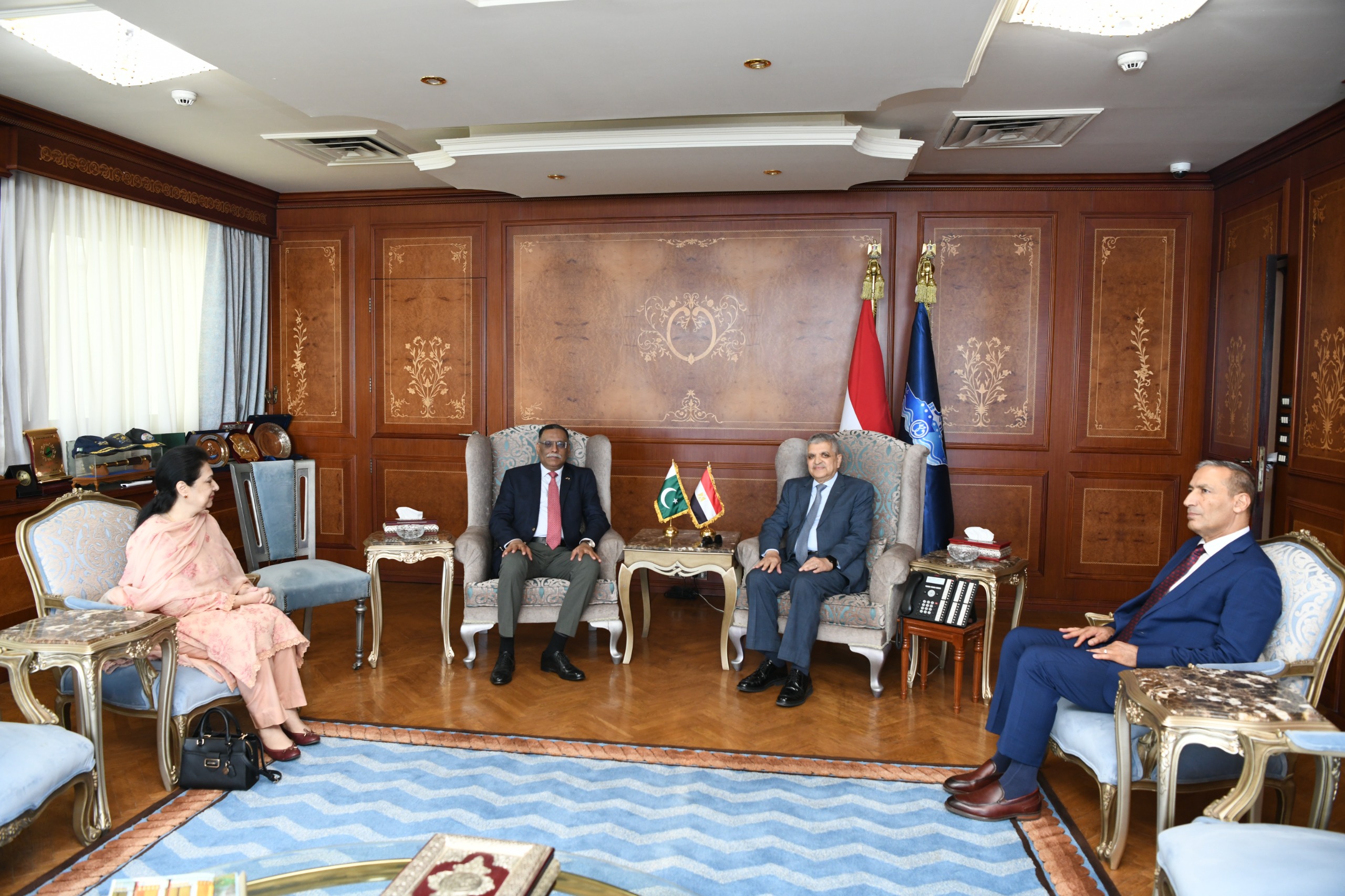استقبل أسامة ربيع رئيس هيئة قناة السويس، ساهر شمشاد مرزا، يرافقه السفير عامر شوكت السفير الباكستاني بالقاهرة، بحضور أشرف عطوة نائب رئيس الهيئة، وذلك بمبنى الإرشاد بمحافظة الإسماعيلية.