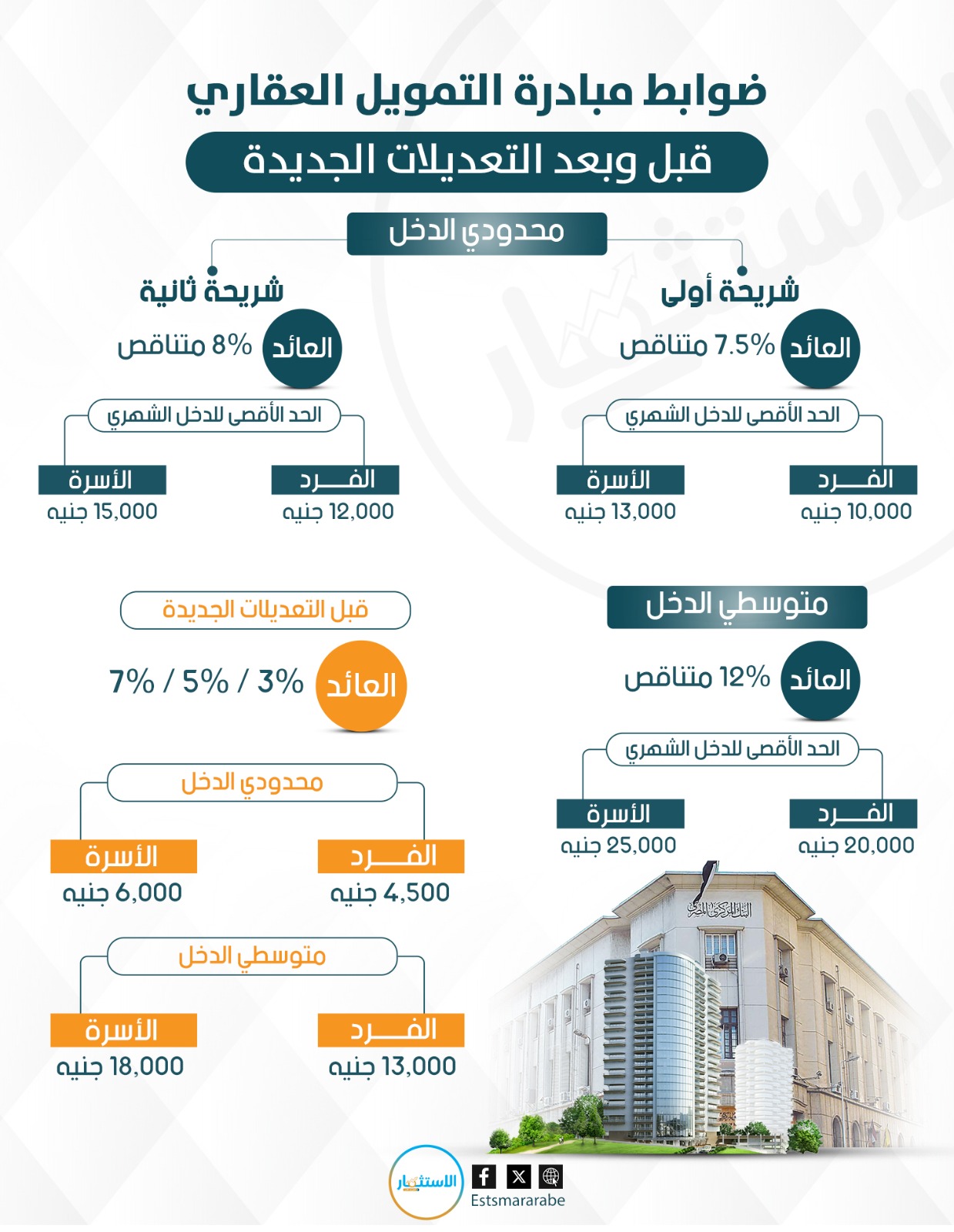 إنفوجرافيك||تفاصيل مبادرة التمويل العقاري قبل وبعد التعديلات الجديدة