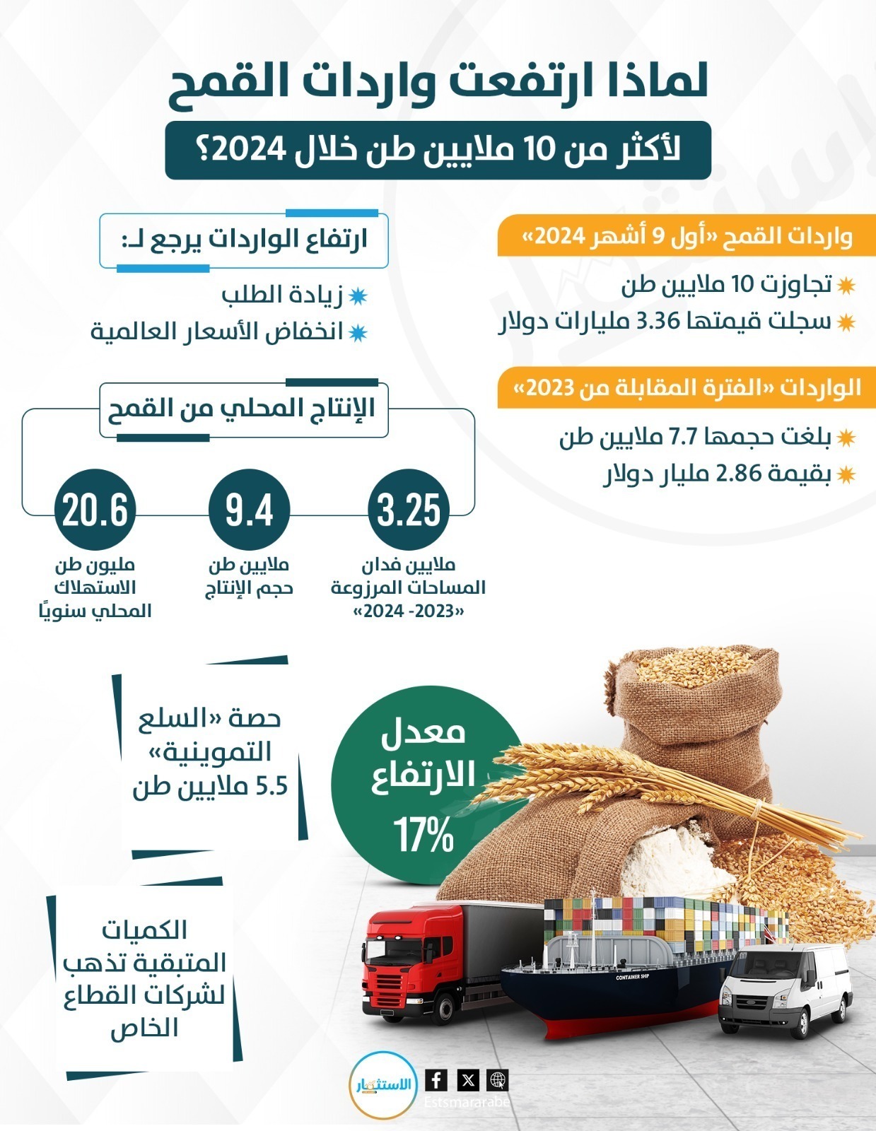 إنفوجرافيك||لماذا ارتفعت واردت مصر من القمح خلال 2024؟ Mona في الثلاثاء, 24 ديسمبر, 2024 - 9:00 صباحًا شارك FacebookTwitterTelegramWhatsAppPinterestالبريد الإلكتروني الرابط المختصر: https://estsmararabe.com/?p=361858اضغط لنسخ الرابط تابعنا على: نبض جوجل نيوز تليجرام