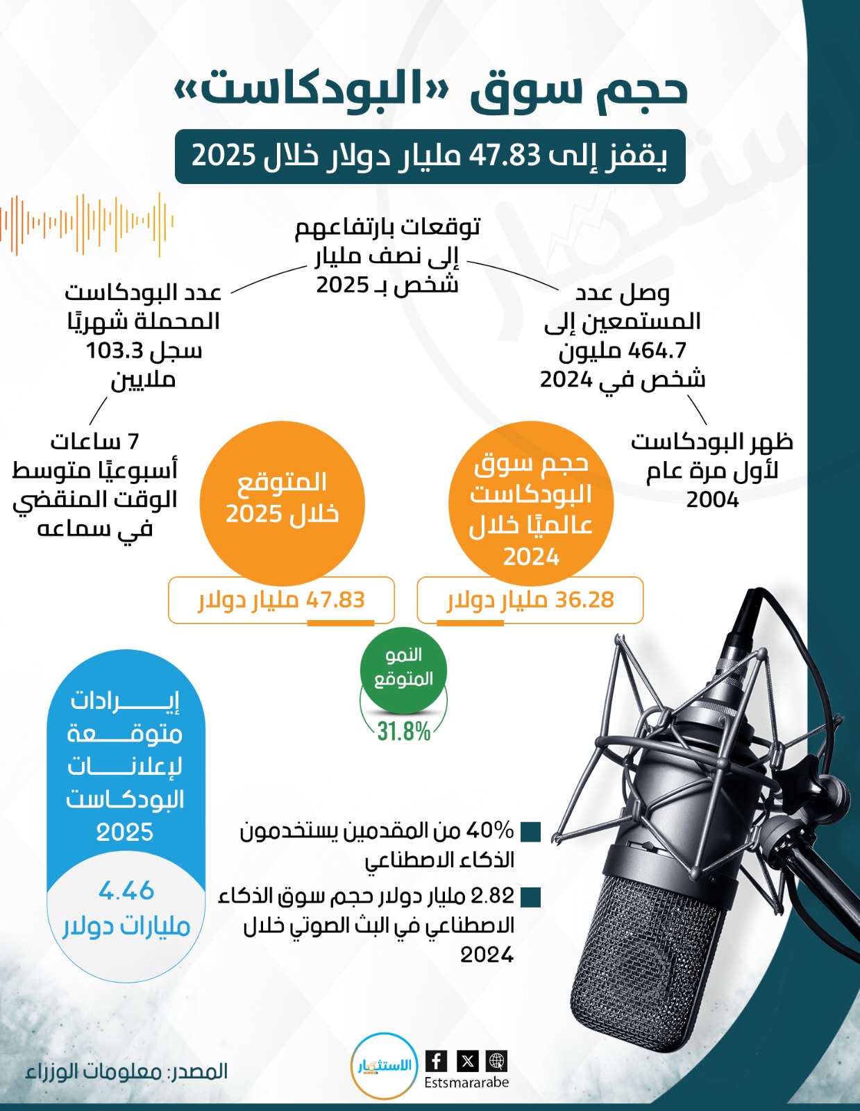 إنفوجرافيك || كم حجم سوق «البودكاست» المتوقع خلال 2025؟