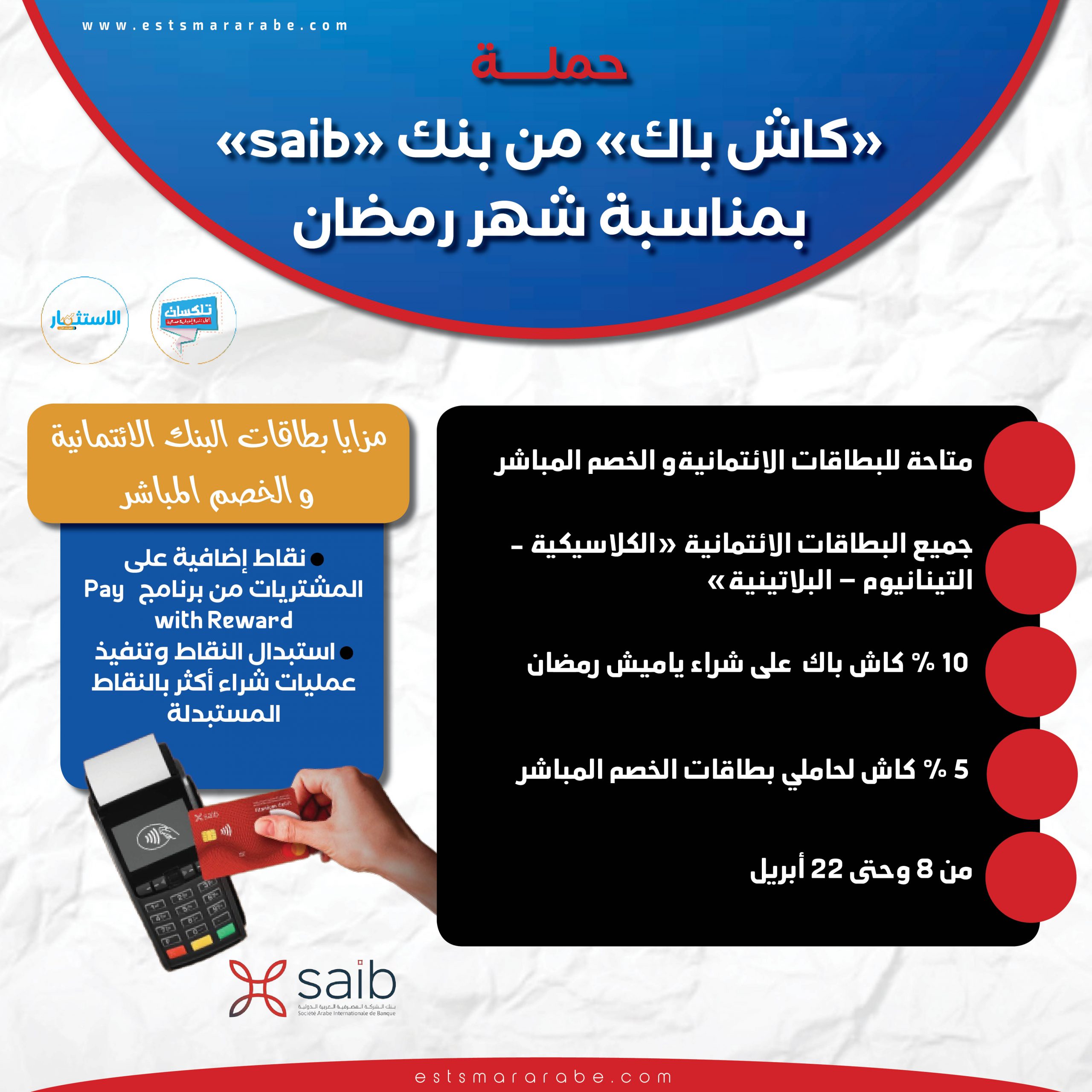 إنفوجراف|| حملة «كاش باك» من بنك «saib» بمناسبة شهر رمضان ads في الأحد, 11 أبريل, 2021 - 12:27 مساءً شارك FacebookTwitterTelegramWhatsAppPinterestالبريد الإلكتروني الرابط المختصر: https://estsmararabe.com/?p=37289اضغط لنسخ الرابط تابعنا على: نبض جوجل نيوز تليجرام