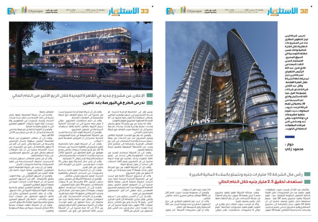 وأكد أن أولى مشروعات الشركة كان ليفيل بزنس تاور في العاصمة الإدارية الجديدة تم شراء المشروع في شهر نوفمبر الماضي بإجمالي استثمارات6 مليار جنيه مشيرا إلى أنه النسخة المذكورة لمشروع ليفيلز بالكويت