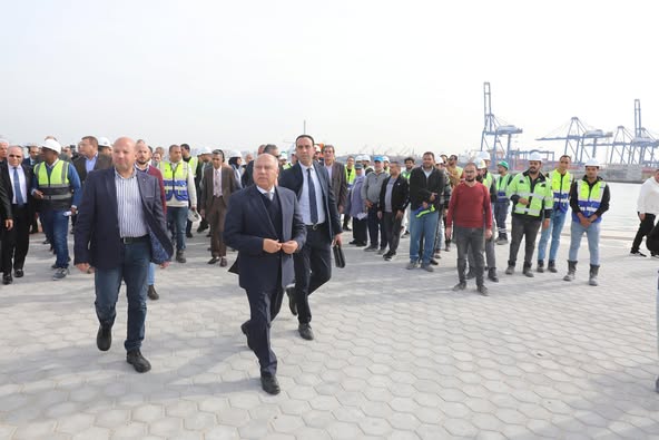 وكان في استقباله كل من اللواء/ نهاد شاهين نائب وزير النقل للنقل البحري واللواء طارق عبد الله رئيس قطاع النقل البحري واللواء احمد حواش رئيس هيئة ميناء الاسكندرية.