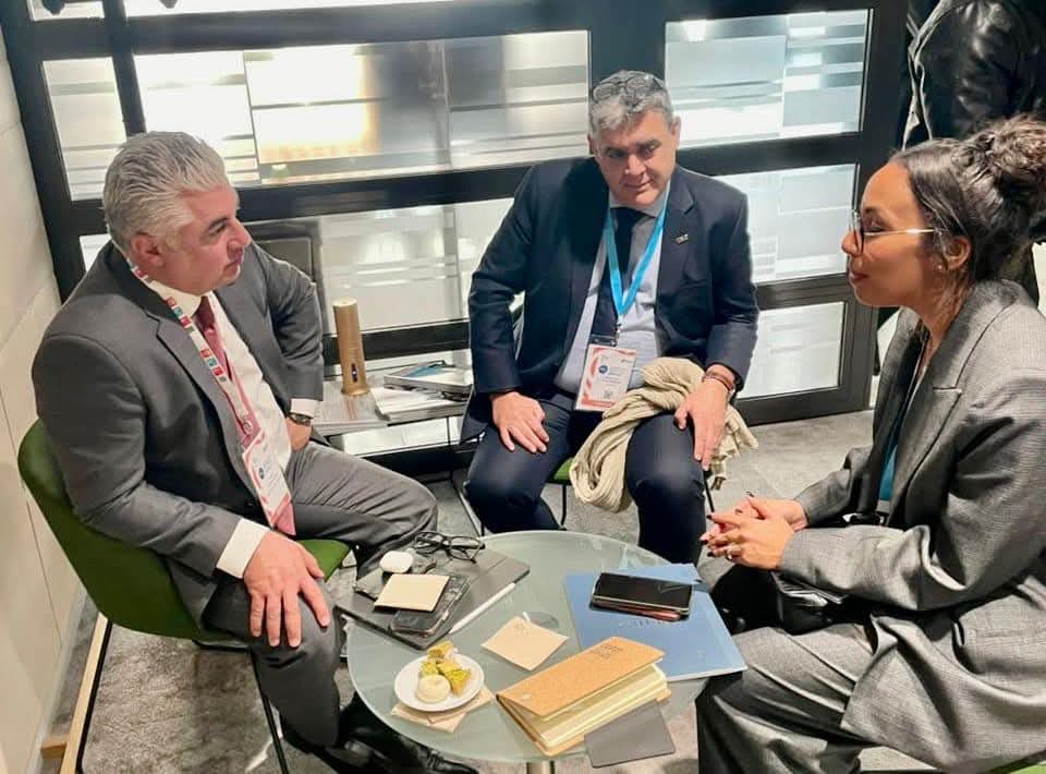وفي لقاء آخر، اجتمع مع أزمنى جولامالي، رئيسة مجموعة OCEINDE الصناعية، لبحث التعاون في قطاعات تشمل الصناعات الكيميائية ومواد البناء والاتصالات ومراكز البيانات وكفاءة الطاقة.