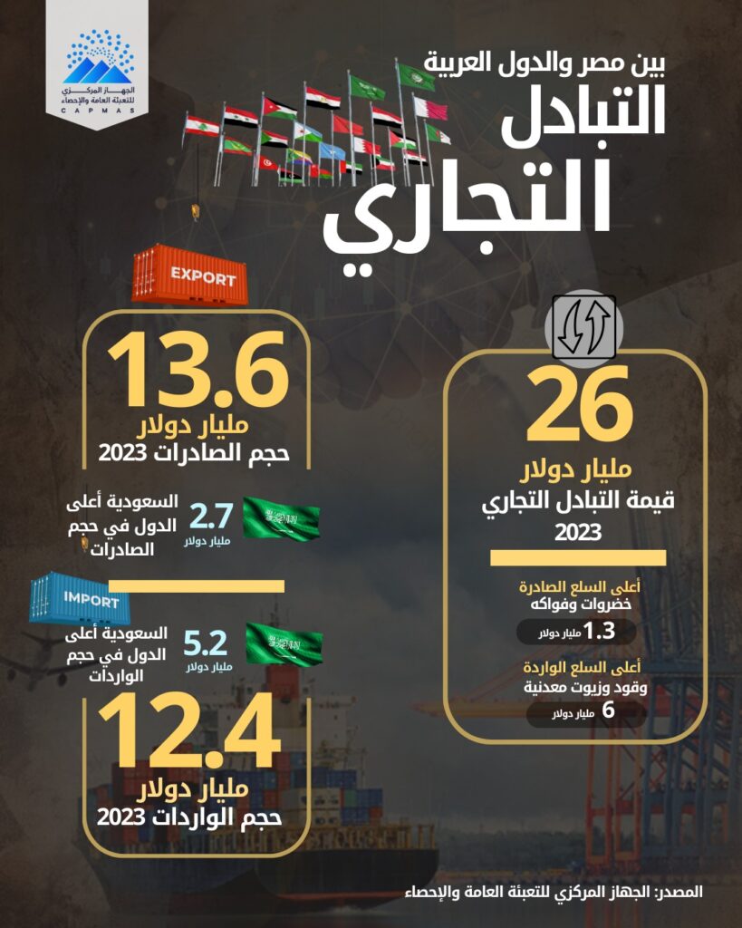 وذكر الجهاز أن قيمة الاستثمارات المصرية في الدول العربية 3 مليارات دولار خلال العام المالى 2023/2022.