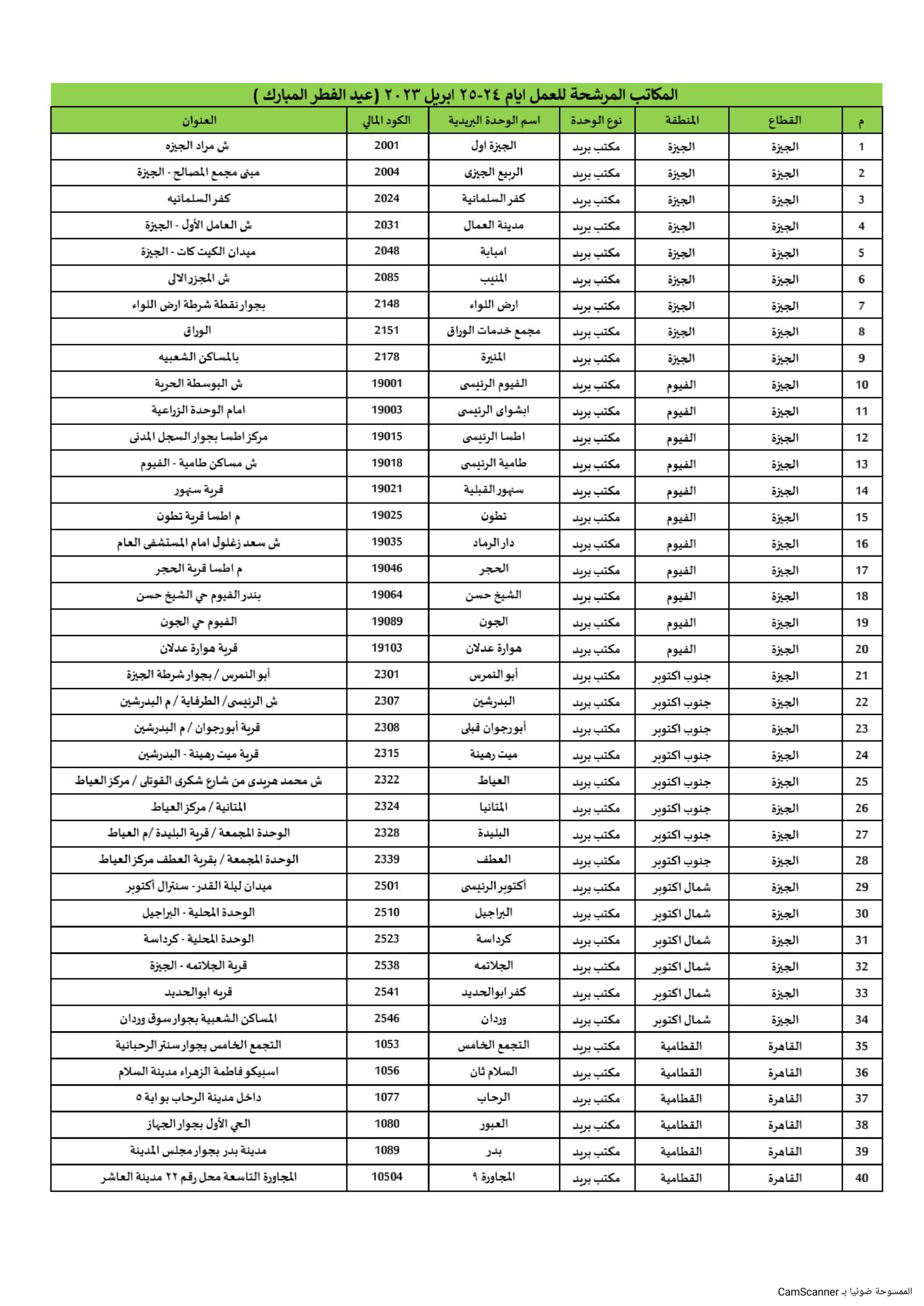 العودة إلى "«البريد» تعلن تشغيل 300 مكتبًا رئيسيًا في المحافظات يومي 24 و25 إبريل" المكاتب التى ستعمل خلال إجازة العيد_page-0001 السابق