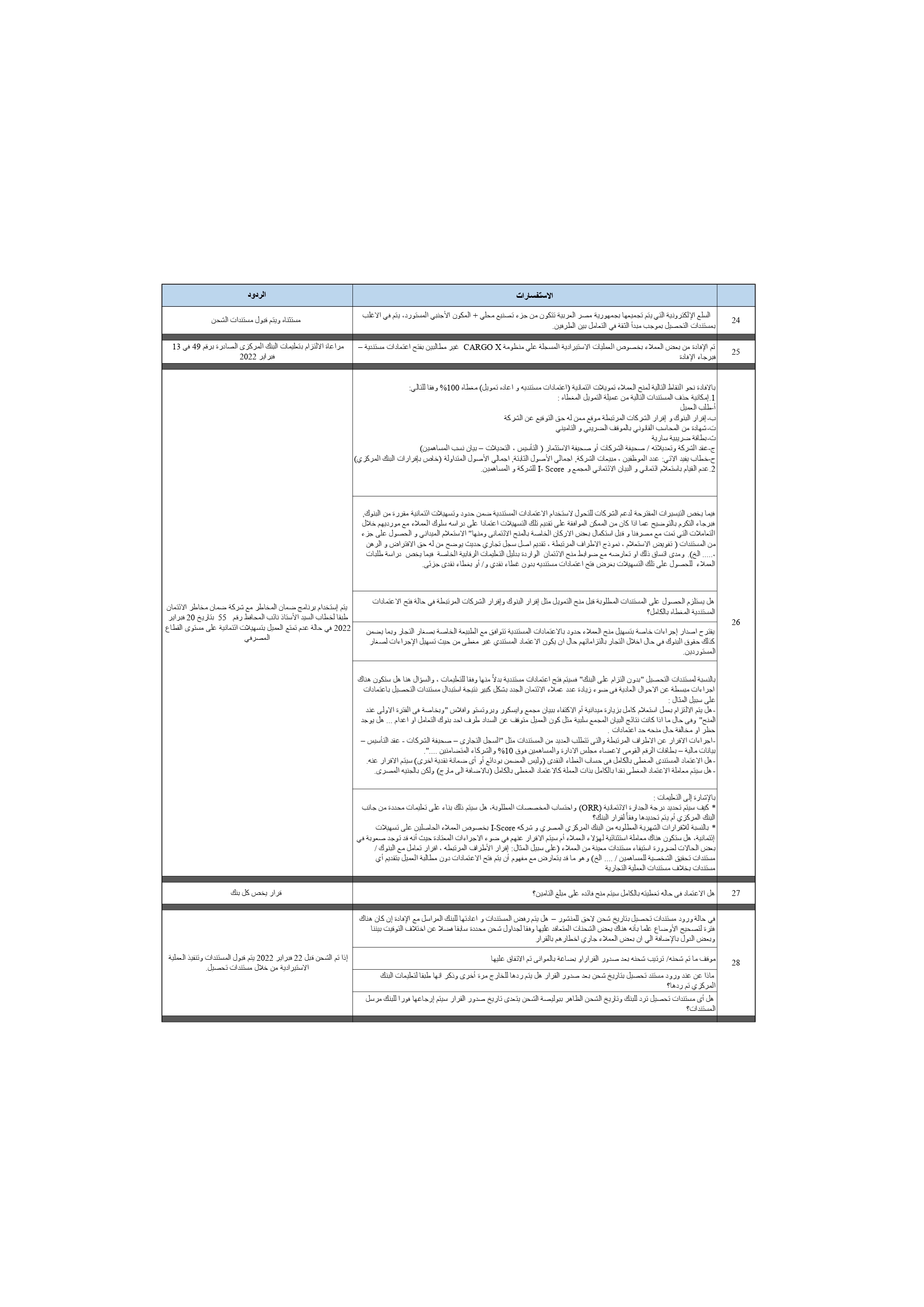 كتاب دوري بتاريخ 27 أكتوبر 2022 بشأن تحديث الرد علي استفسارات البنوك بخصوص الاعتمادات المستندية_page-0003
