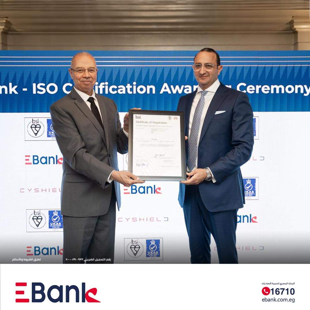 وبتلك المناسبة أقام EBank احتفالية كبيرة لاستلام شهادة ISO من هيئة المواصفات البريطانية في مصر BSI.