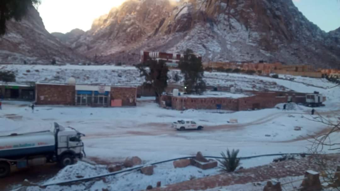 شهدت مرتفعات سانت كاترين تساقط الثلوج، وزين الجليد قمة الجبال؛ حيث سجلت درجات الحرارة فوق الجبل 03-.