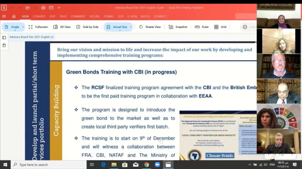 ومن جهتها استعرضت سينا حبوس، الرئيس التنفيذي للمركز الإقليمي للتمويل المستدام ما تم إنجازه خلال الستة أشهر الماضية منذ الاتفاق على استراتيجية المرحلة التأسيسية للمركز، بداية من افتتاح مقر مجهز للمركز ضمن مجمع المعرفة للثقافة المالية التابع للهيئة، وتعيين مدير تدريب للمركز، واستكمال العمل نحو تدعيم المركز بالكفاءات لاستكمال الهيكل التنظيمي له، كما تمت الموافقة على استراتيجية المرحلة التأسيسية من قبل مجلس إدارة معهد الخدمات المالية التابع له المركز، إضافة إلى قيام المركز بنشاط مكثف فيما يتعلق بطرق الأبواب وعقد عدد من الشراكات والتواصل مع عدد من المنظمات والجهات الدولية التي تدعم عمل المركز من خلال القيام ببرامج مشتركة لبناء القدرات وتقديم برامج تدريبية تحمل صفة العالمية وتطوير المحتوى الذي يمكن الشركات المحلية والإقليمية من مواكبة التطورات العالمية.