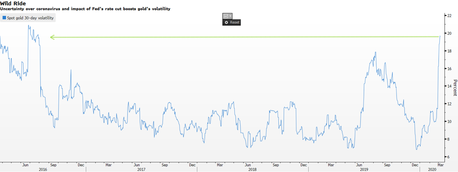 أنهى الذهب تعاملات الأسبوع الماضي بارتفاع بلغ 5.56% ليصل إلى 1673.8 دولار، وهو أعلى مستوى سعري له في سبع سنوات حيث قفزت معدلات الطلب على أصول الملاذات الآمنة (منخفضة المخاطر) خلال الأسبوع.