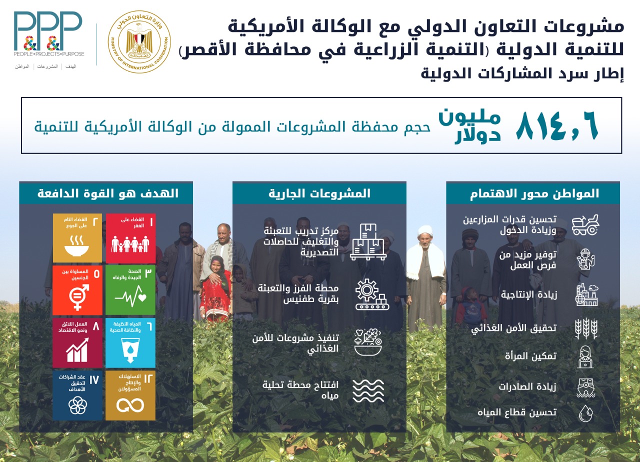 «المشاط» تتفقد عددًا من المشروعات الزراعية الممولة من الوكالة الأمريكية وبرنامج الأغذية العالمي بمحافظة الأقصر.. وتفتتح توسعات محطة الصرف الصحي (انفوجراف)