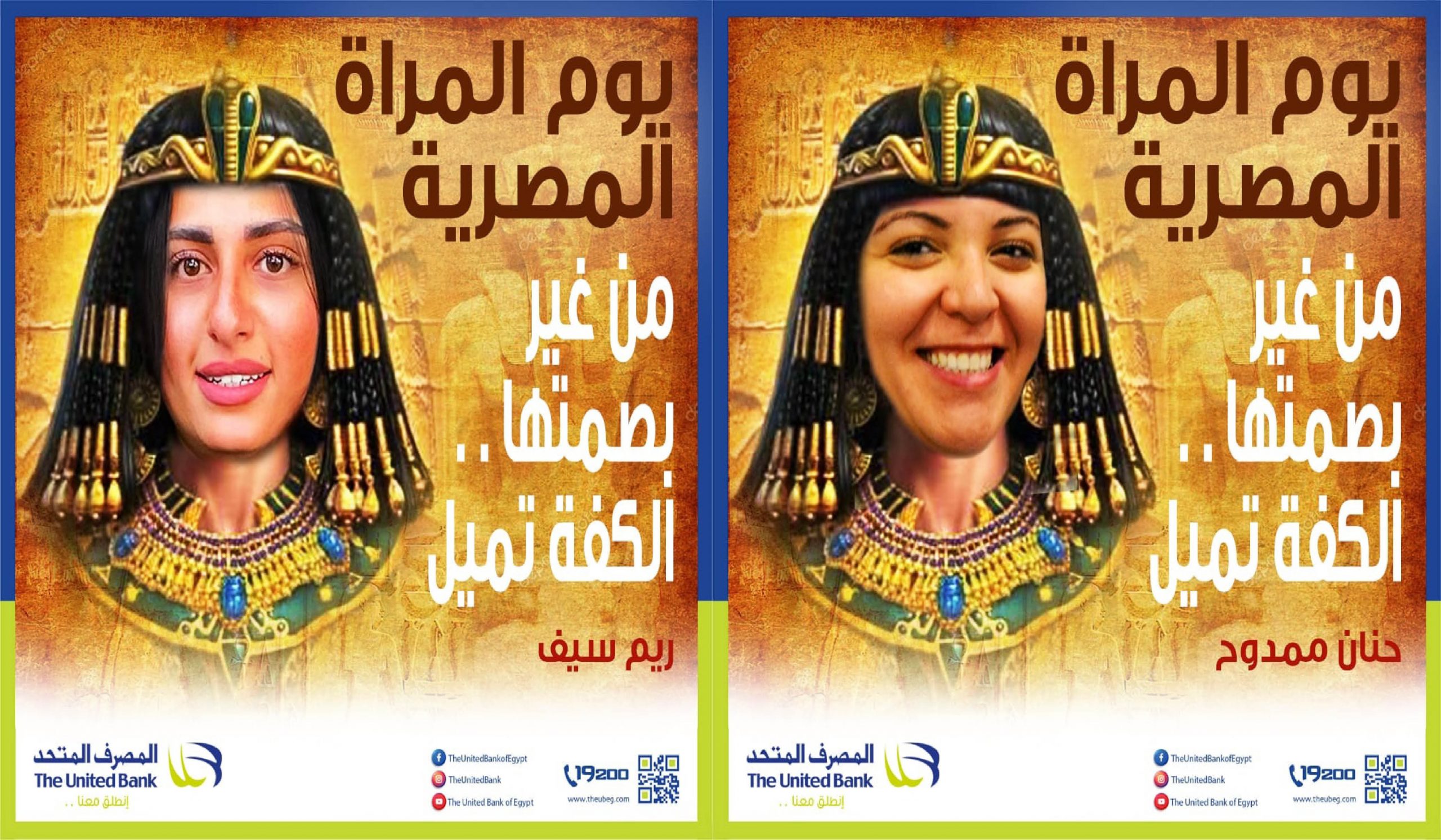 هذا وصمم المصرف المتحد اطار فرعوني مميز لجميع صور العميلات وفريق عمله من الموظفات مما يعكس شخصية المراة المصرية القوية منذ الحضارة المصرية القديمة وتقديرا لدورهن المؤثر علي مر العصور.