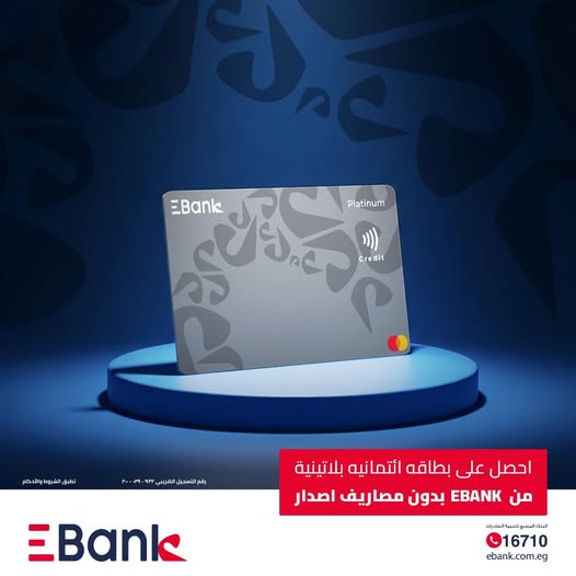 أعلن البنك المصري لتنمية الصادرات EBank، عن إمكانية الحصول على البطاقات الائتمانية البلاتينية بدون مصاريف إصدار.