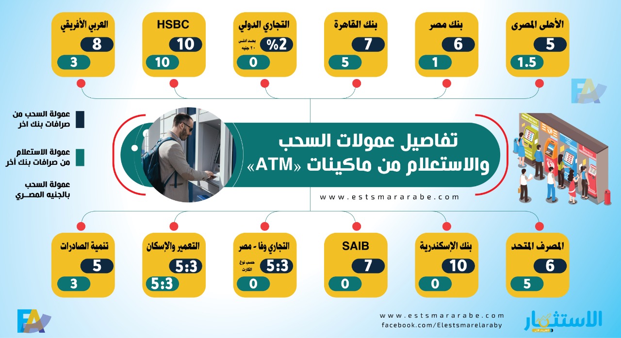 انفوجراف… تفاصيل عمولات السحب والاستعلام من ماكينات الصراف الآلي بالبنوك