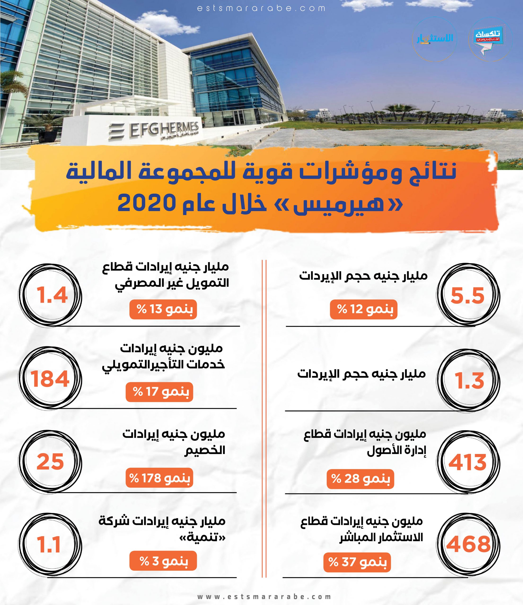 انفوجراف ||| نتائج ومؤشرات قوية للمجموعة المالية «هيرميس» خلال عام 2020