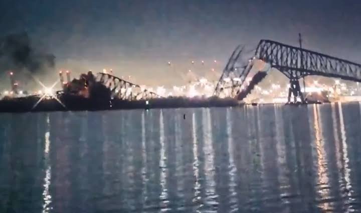 بينما أظهرت لقطات اذاعتها الشبكة لحظة انهيار جسر “فرانسيس سكوت كي” الذي يبلغ طوله 1.6 ميلا.