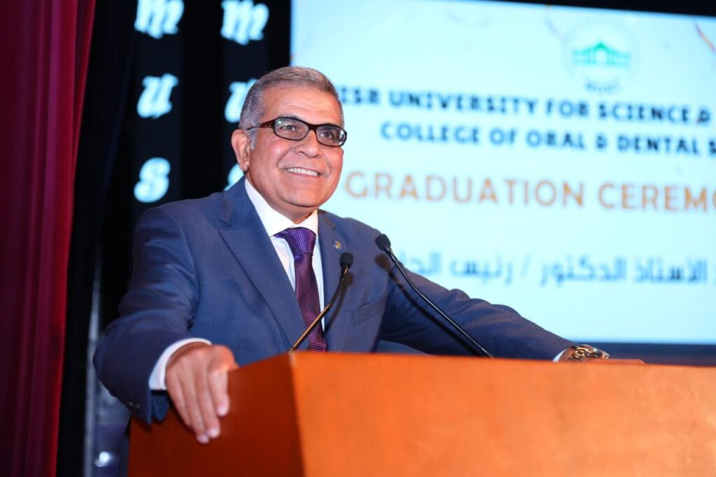وفى هذا الإطار وجه الدكتور أشرف حيدر غالب، القائم بأعمال رئيس جامعة مصر للعلوم والتكنولوجيا، الشكر لخالد الطوخى رئيس مجلس الأمناء على توفير الدعم الكامل للطلاب خلال مراحلهم التعليمية، مهنئا الطلاب بتخرجامعة بتخرجكم، والف مبروك لشباب خريجي جامعة مصر بكلية طب الاسنان، وهذه بداية مرحلة جديدة في حياتكم وتحية كبيرة لأولياء الأمور الذين شرفونا”.