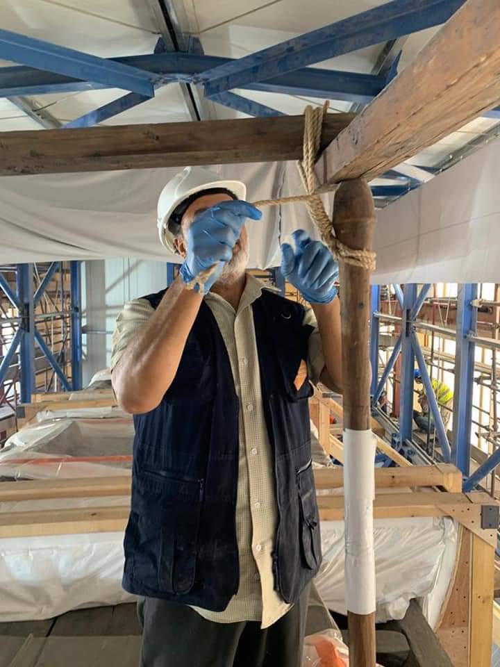 وأشار إلى أن هناك فريق متميز من مرممي مركز ترميم المتحف المصري الكبير والمجلس الأعلى للآثار قاموا بعمل مسح بأشعة الليزر للمركب لتوثيق أدق تفاصيلها وتغليفها استعداداً للنقل، وبالتوازى مع ذلك، تم تصميم وتصنيع الهيكل المعدني حول المركب، وإقامة شدادات وسقالات معدنية خارج وداخل المبنى لتدعيمه.