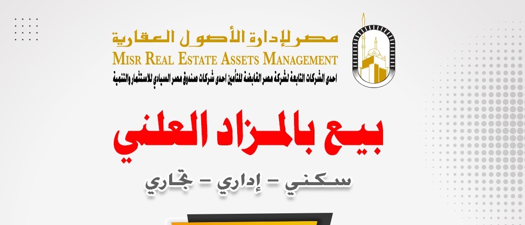 حيث أعلنت الشركة مصر لإدارة الأصول العقارية عن بيع بالمزاد العلني، وحدات سكنية وإدارية وتجارية.