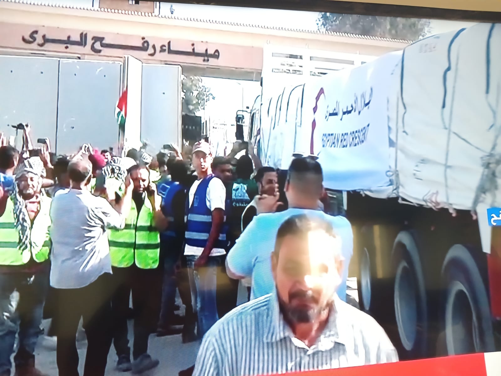 بدأ منذ قليل عبور شاحنات المساعدات الإنسانية عبر معبر رفح إلى أهالي غزة.