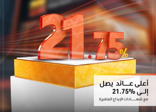 - عائد متغيرة لمدة 3 سنوات: (20.25٪ شهرياُ، 20.75٪ ربع سنوياً، 21.75٪ سنويًا)