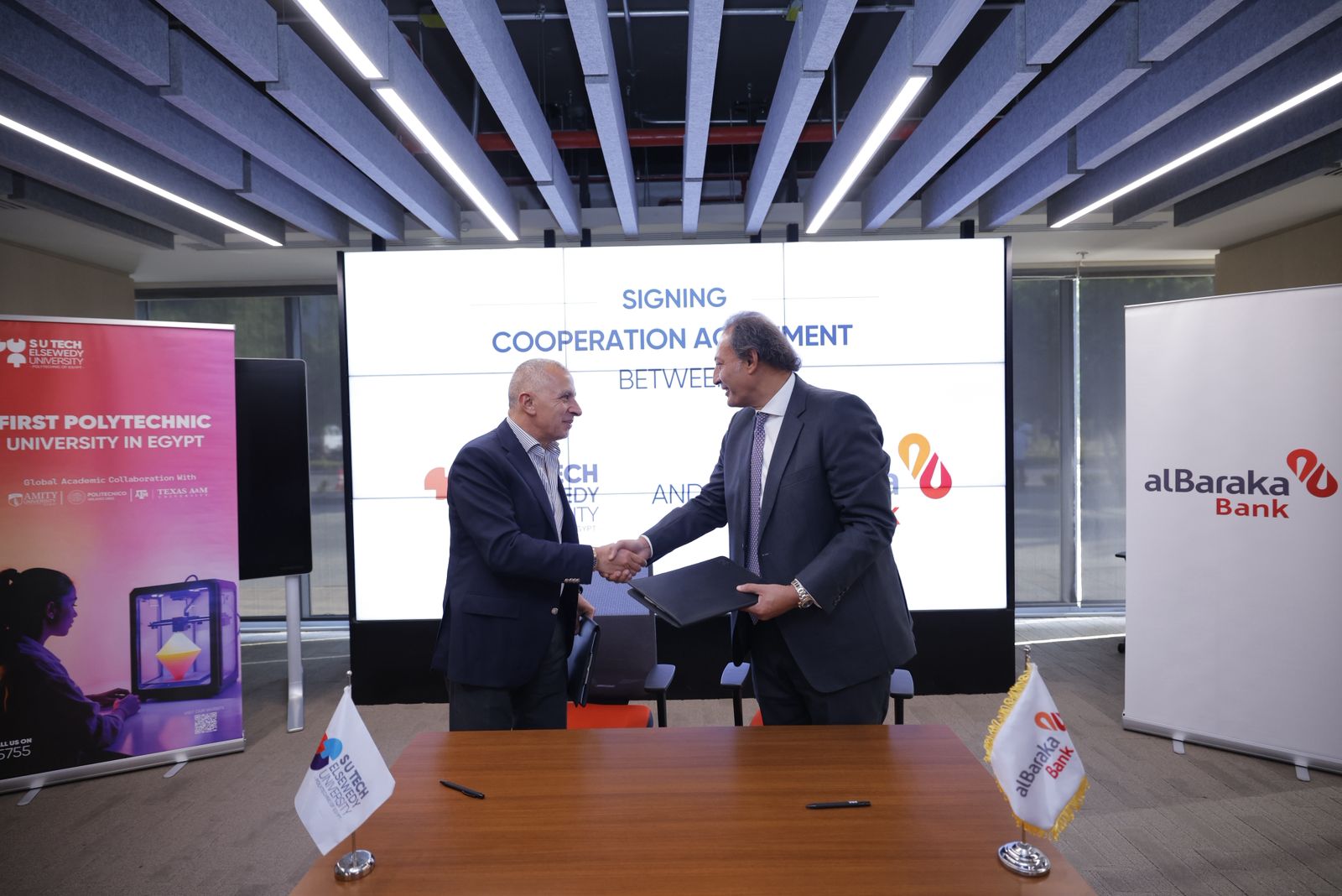أُبرمت الاتفاقية بمقر شركة السويدي إليكتريك بحضور حازم حجازي، الرئيس التنفيذي ونائب رئيس مجلس الإدارة لبنك البركة – مصر، وأحمد السويدي، رئيس مجلس أمناء جامعة السويدي – بوليتكنك مصر، إلى جانب عدد من قيادات المؤسستين، بينهم شريف عزت، حنان الريحاني، وأحمد حسن يوسف.