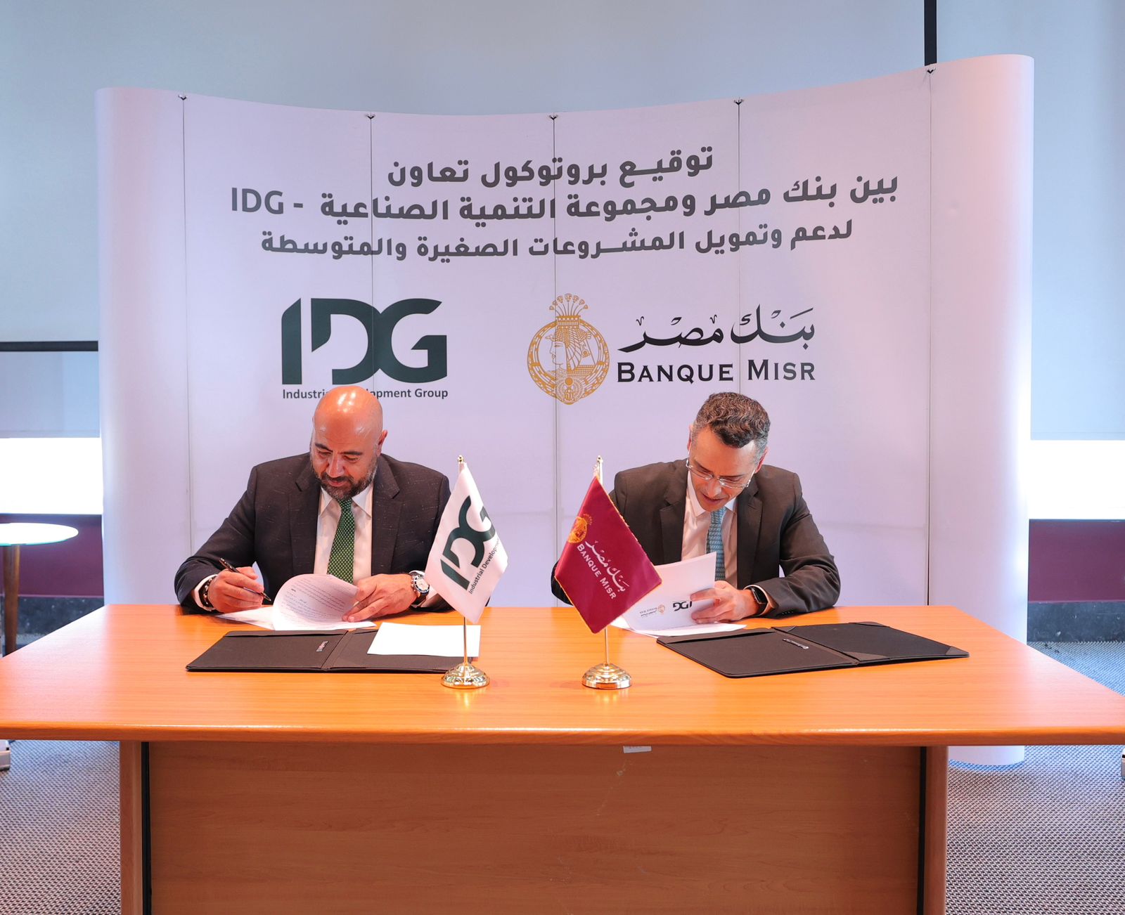 وقع بنك مصر بروتوكول تعاون مع مجموعة التنمية الصناعية (IDG)، أحد أكبر المطورين للمناطق الصناعية ومجمعات المصانع سابقة التجهيز، بهدف دعم القطاع الصناعي وتقديم تسهيلات تمويلية للشركات الصغيرة والمتوسطة ومتناهية الصغر لمساعدتها على التوسع والنمو باعتبارها ركيزة للنمو الاقتصادي المصري.
