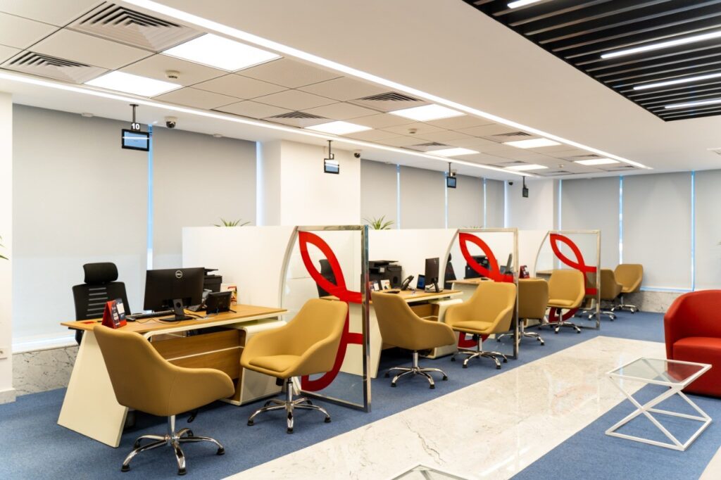 واشار إلى أنه تم تجهيز صالة خاصة لكبار العملاء لتحقيق التميز والخصوصية وسرعة إنجاز معاملاتهم المصرفية . وقد تم تزويد الفرع بشاشات تفاعلية لعرض منتجات البنك و Digital banking corner .
