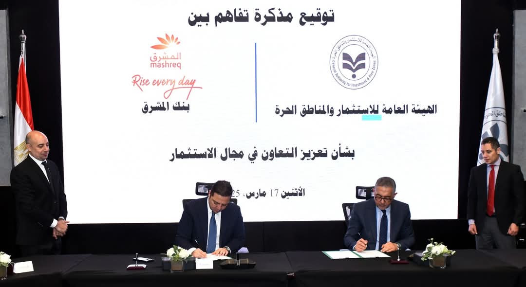 وقع حسام هيبة، الرئيس التنفيذي للهيئة العامة للاستثمار والمناطق الحرة، وعمرو البهي، الرئيس التنفيذي لبنك المشرق مصر مذكرة تفاهم بشأن تعزيز التعاون في مجال الاستثمار.