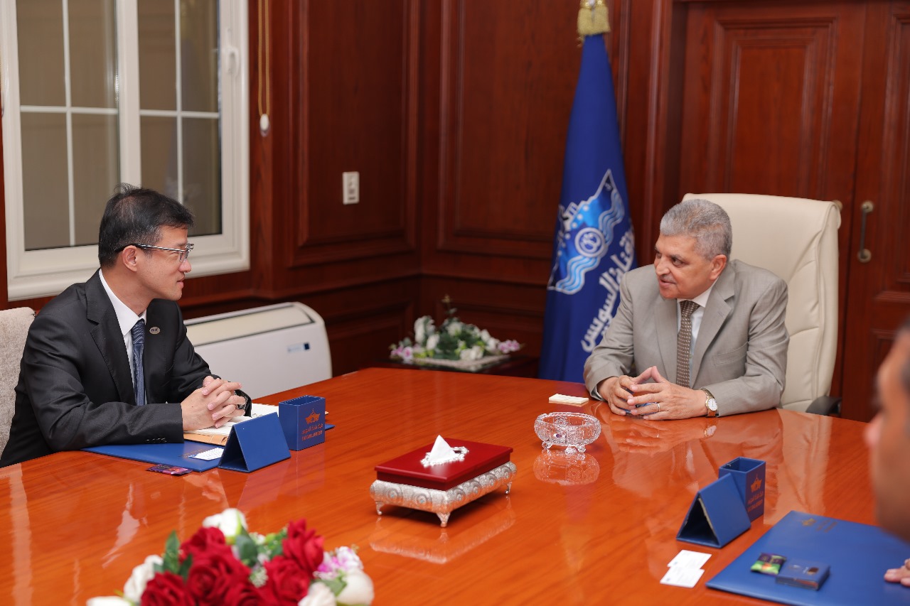 تنفيذًا لتوجيهات الرئيس عبد الفتاح السيسي بتعظيم الاستفادة من أصول هيئة قناة السويس وتوطين الصناعات البحرية، اجتمع أسامة ربيع رئيس هيئة قناة السويس، مع Zhang jinming نائب رئيس شركة CSTC التابعة للمجموعة الصينية CSSC، إحدى أكبر الشركات العالمية الرائدة في الصناعات البحرية، لبحث سبل التعاون المشترك لتطوير ترسانات وشركات الهيئة.