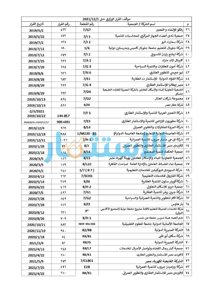 تعرف على أسماء الشركات الحاصلة على القرارى الوزارى لعام 2021