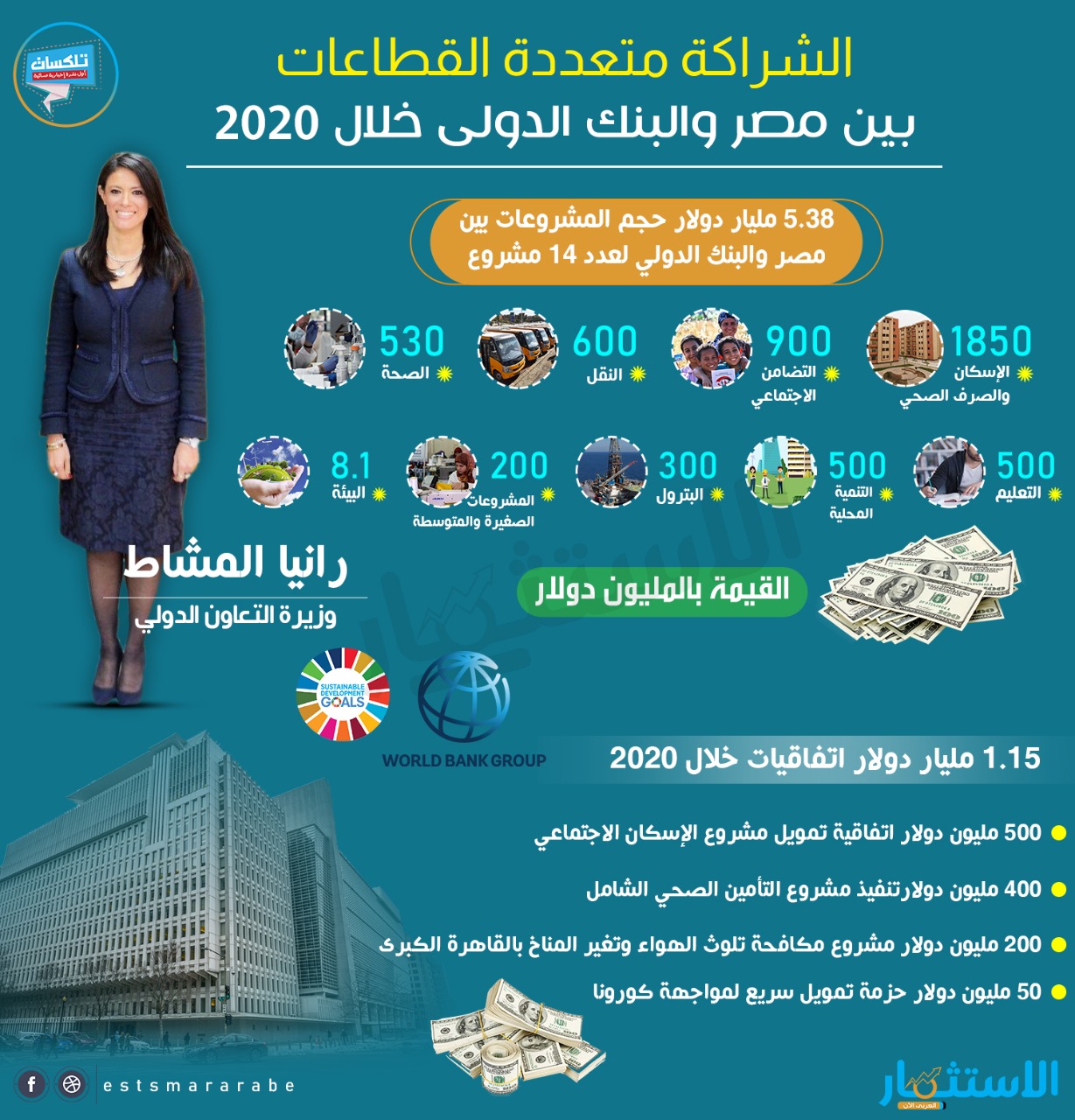 ⇐ إنفوجرافيك ||| اتفاقيات وتمويلات البنك الدولى لمصر خلال عام 2020