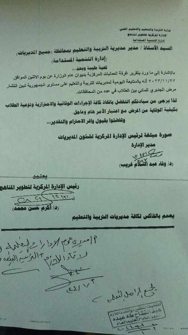وجاء ذلك بعد أن تلقت غرفة العمليات المركزية بالوزارة تقرير يفيد انتشار المرض بين الطلاب؛ إذ وجهت باتخاذ كافة الإجراءات الوقائية والاحترازية وتوعية الطلاب بكيفية الوقاية من مرض الجديري المائي بالمدارس، مع اعتبار الأمر هام وعاجل.