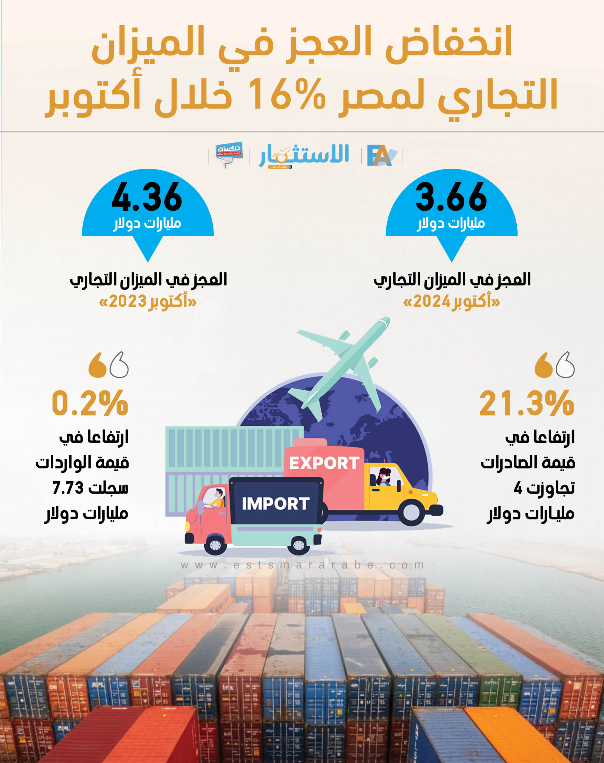 وجاء ذلك خلال نشرة الجهاز المركزي للتعبئة العامة والإحصاء والتي تنشر بيانات التجارة الخارجية عن شهر أكتوبر 2024 والتي حصل ” الاستثمار العربي” على نسخة منها.