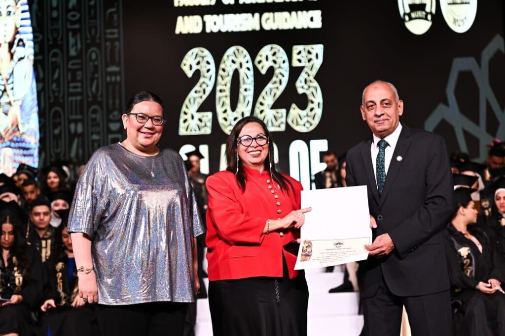 فيما قدمت الدكتور أميمة الشال، عميد كلية الآثار جامعة مصر للعلوم والتكنولوجيا، التحية لضيوف الحفل، كما هنأت الطلاب وأولياء أمورهم على التخرج والاستعداد لخوض الحياة العملية بعد أن تم تأهيلهم على أعلى مستوى داخل الكلية من خلال توفير كل الدعم لهم من برامج تواكب العصر الحديث في الاثار والارشاد السياحي، تمكنهم من امتلاك الأدوات التي تساعدهم على التسلح بكل ما هو جديد في سوق العمل حتى يتم خوض التجارب العملية بكل قوة، حيث تعمل الكلية علي دعم أعضاء هيئة التدريس ومعاونيهم في تطوير معارفهم ومهارتهم بالتوازي مع تحسين نوعية الخريجين، من خلال توفير الكتب والمراجع المتخصصة لهم، ودعم إشتراكهم في المؤتمرات المحلية والدولية.