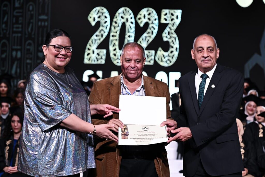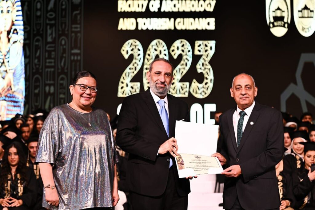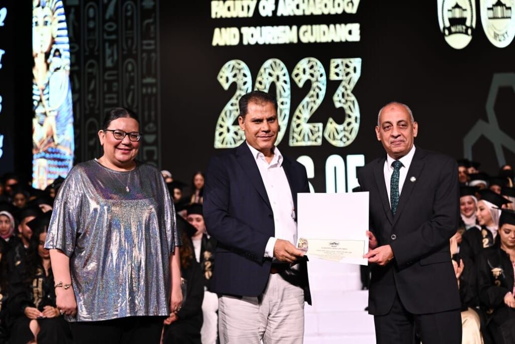 ورحب د. شريف رفعت بالحضور الذين حرصوا على مشاركة الطلاب فرحتهم بعد الانتهاء من مشوارهم التعليمي والاستعداد لخوض تجارب الحياة العملية متسلحين بالعلم والانطلاق لسوق العمل بعد أن تم تأهيلهم على أعلى مستوى وفق البرامج المتقدمة في مجال الترميم والارشاد السياحي”، وقدم “رفعت”، الشكر والتحية لأعضاء هيئة التدريس الذين كانوا بمثابة أولياء أمور لجميع الطلاب خلال فترة دراستهم، مؤكدا على أن الفرحة اليوم تخص أولياء الأمور أكثر من الخريجين لانهم أصحاب هذا الحفل الحقيقيين، ولا يمكن ان يتم تغافل دورهم الفعال في الوصول بأبنائهم لمرحلة التخرج”.