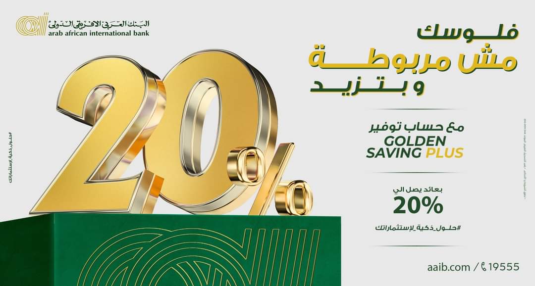 يقدم البنك العربي الإفريقي الدولي عددا من الأوعية الإدخارية ومنها حساب توفير Golden Saving Plus  بعائد 20%.