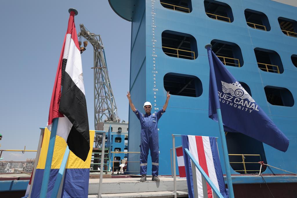 وذلك تحت إشراف مجموعة من مرشدي القناة وبمساعدة ثلاثة قاطرات تابعة للهيئة.