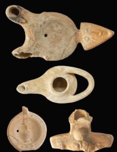 وأضاف أنه تم العثور على عدد كبير من بقايا أمفورات وتمائم ومشغولات معدنية وما يقرب من ٧٠٠ عملة أثرية وأطباق وأواني مختلفة الأشكال والأحجام، بالإضافة إلى كميات كبيرة من الأدوات المرتبطة بأنشطة صناعية مثل أثقال النول وشباك الصيد.