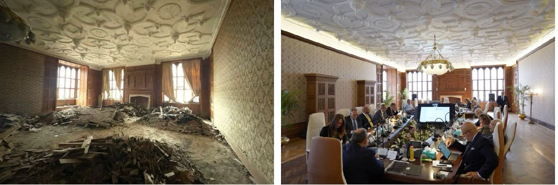 وتعد عملية الترميم الدقيق بالمبنى هي عملية متخصصة جدا تحتاج الى تضافر الجهود من خبراء الترميم والعمارة والكيميائيين ومؤرخي الفن والفيزيائيين.