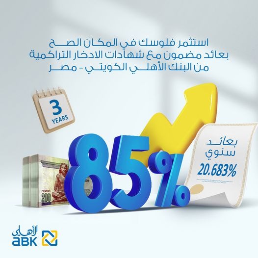 - سعر العائد: 20.683% سنوياً، بقيمة إستحقاقية 85% في نهاية مدة الشهادة.