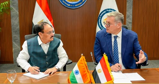 استقبل كريم بدوي وزير البترول والثروة المعدنية جاجات براكاش نادا وزير الصحة والكيماويات والأسمدة الهندي، وسوريش ريدي السفير الهندي في القاهرة، ووفد تجاري من ممثلي الشركات الهندية والذي يزور مصر حالياً للمشاركة في النسخة الثالثة من المؤتمر العالمي للسكان والصحة والتنمية البشرية حيث تم بحث فرص التعاون وإقامة استثمارات مشتركة في صناعات البتروكيماويات والتعدين.