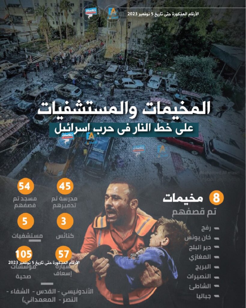 حيث استهدف الاحتلال الإسرائيلي في الأيام السابقة مخيمات لاجئيين ومستشفيات تحمل الكثير من الأبرياء والمصابين.